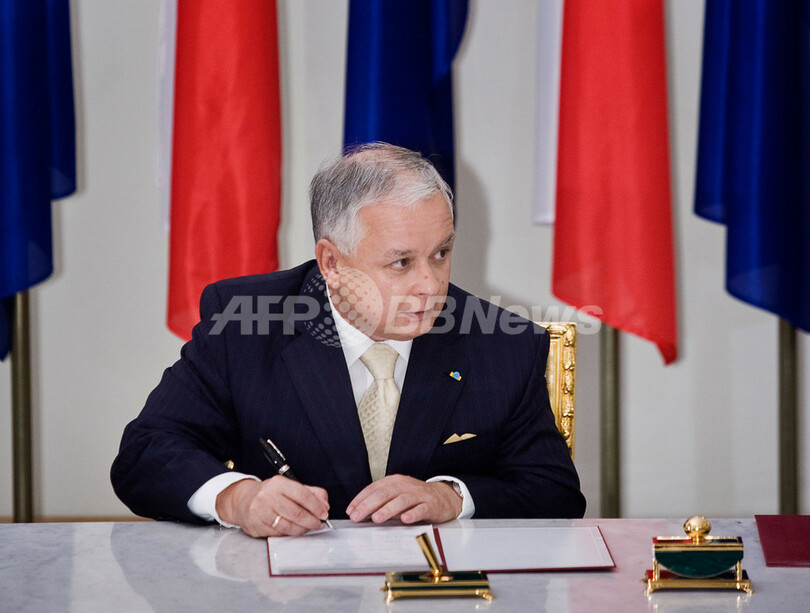 ニュース 政治・経済 ポーランド、リスボン条約批准 チェコ残すのみ 2009年10月10日 23:27 発信地:ワルシャワ/ポーランド [ ヨーロッパ ポーランド ] このニュースをシェア ‹ › ❮ 3/4 ❯ ポーランドの首都ワルシャワ(Warsaw)の大統領府で欧州連合(EU)の新基本条約「リスボン条約(Lisbon Treaty)」の批准書に署名するレフ・カチンスキ(Lech Kaczynski)ポーランド大統領(2009年10月10日撮影)。(c)AFP/WOJTEK RADWANSKI 画像作成中 ! 【10月10日 AFP】ポーランドのレフ・カチンスキ(Lech Kaczynski)大統領が10日、欧州連合(EU)の新基本条約「リスボン条約(Lisbon Treaty)」の批准書に署名した。これにより、同条約の未批准国はチェコだけとなった。(c)AFP 政治・経済 一覧へ> メディア・報道関係・法人の方向け 写真・動画 購入のお問合せ>