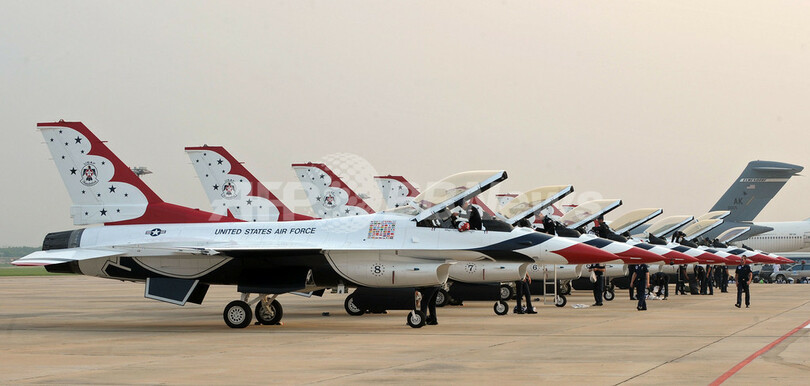 Thunderbirds)」が登場し、華麗な曲芸飛行を披露した。(c)AFP