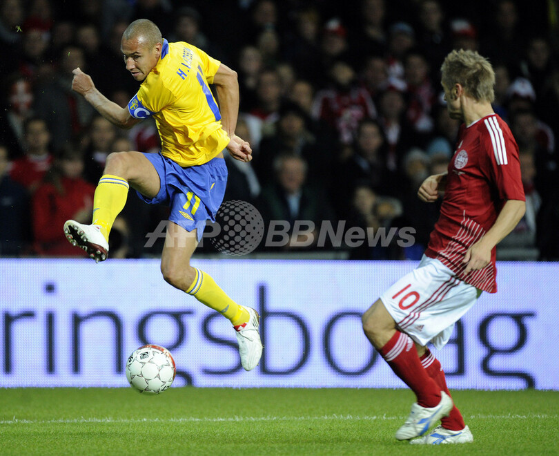 【10月11日 AFP】2010年サッカーW杯南アフリカ大会(2010 World Cup)欧州予選・グループ1、デンマーク対スウェーデン。試合はデンマークが1-0で勝利し、本大会出場を決めた。
