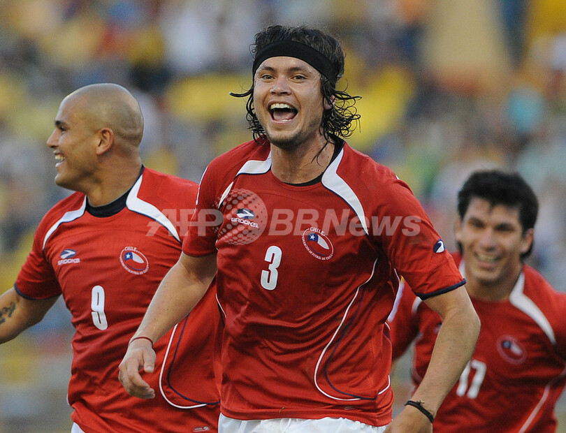 後半に入ると18分にコロンビアはジョバンニ・モレノ(Giovanni Moreno)の得点で試合を振り出しに戻したが、チリは同27分にホルヘ・バルディビア(Jorge Valdivia)の得点で勝ち越すと、さらに同34分にはファビアン・オレジャーナ(Fabian Orellana)の得点で突き放し、ブラジル、パラグアイに続いて予選突破を決めた。(c)AFP