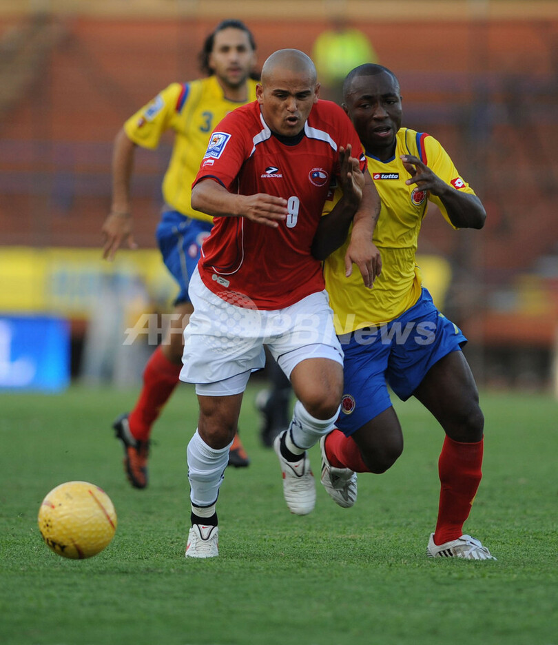 【10月11日 AFP】(写真追加)2010年サッカーW杯南アフリカ大会(2010 World Cup)南米予選第17節、コロンビア対チリ。試合はチリが4-2で勝利し、本大会出場を決めた。
