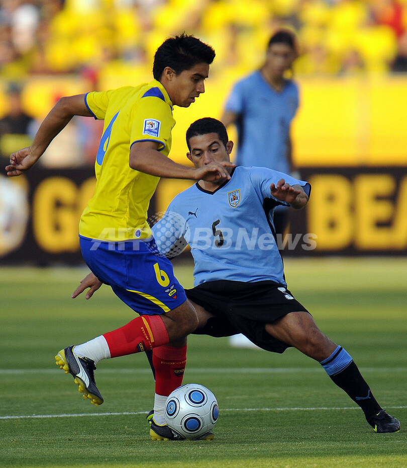スポーツ サッカー ウルグアイ エクアドルに競り勝ち5位浮上、W杯予選 2009年10月11日 13:39 発信地:キト/エクアドル [ 中南米 エクアドル ] このニュースをシェア ‹ › ❮ 13/15 ❯ 2010年サッカーW杯南アフリカ大会(%%2010 World Cup%%)南米予選第17節、エクアドル対ウルグアイ。試合は後半ロスタイムにディエゴ・フォルラン(%%Diego Forlan%%)が決勝点を決めたウルグアイが2-1で勝利し、5位に浮上した。写真はウルグアイのワルテル・ガルガーノ(%%Walter Gargano%%)のチェックを受けるエクアドルのクリスチャン・ノボア(%%Cristian Noboa%%、左)。(2009年10月10日撮影)(c)AFP/RODRIGO BUENDIA 画像作成中 ! 【10月11日 AFP】2010年サッカーW杯南アフリカ大会(2010 World Cup)南米予選第17節、エクアドル対ウルグアイ。試合は後半ロスタイムにディエゴ・フォルラン(Diego Forlan)が決勝点を決めたウルグアイが2-1で勝利し、5位に浮上した。(c)AFP サッカー 一覧へ> メディア・報道関係・法人の方向け 写真・動画 購入のお問合せ>
