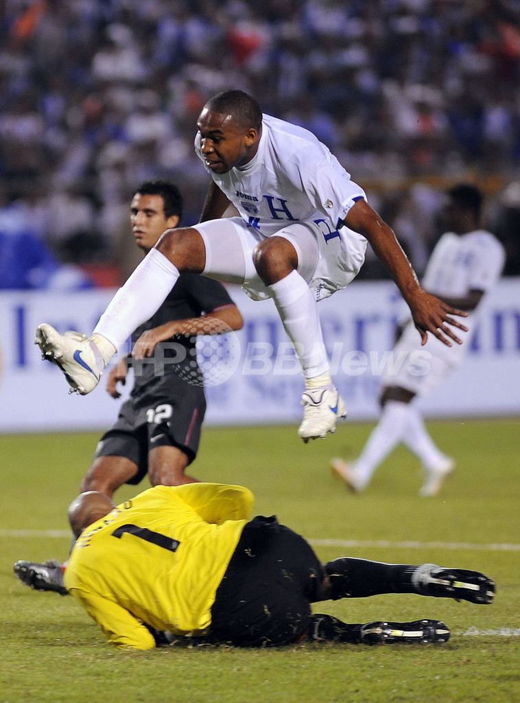 【10月11日 AFP】2010年サッカーW杯南アフリカ大会(2010 World Cup)北中米カリブ海最終予選、ホンジュラス対米国。試合は米国が3-2で勝利し、6大会連続となる本大会出場を決めた。
