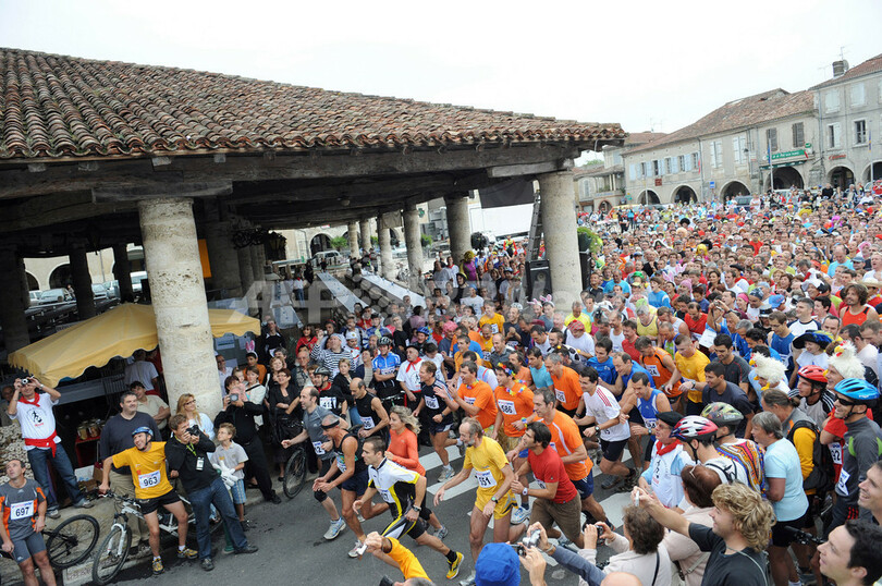 フォアグラ食べ食べ25キロ走破、グルメ向き?の仏デュアスロン大会