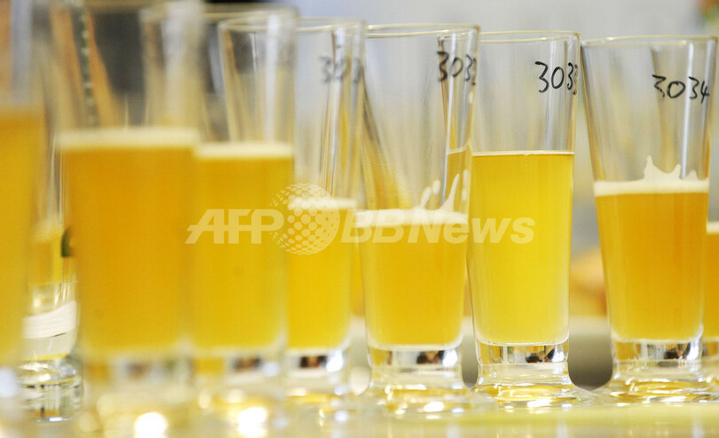 写真は、「ヨーロッパ・ビール・スター・アワード」に出品されたさまざまな種類のビール(2009年10月9日撮影)。(c)AFP/DDP/OLIVER LANG