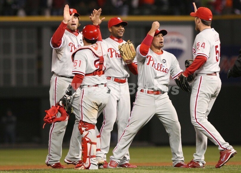 フィリーズは9回表にライアン・ハワード(Ryan Howard)の犠飛で勝ち越すと、その裏はブラッド・リッジ(Brad Lidge)が無失点に抑え、マイナス2度まで冷え込んだロッキーズの本拠地クアーズ・フィールド(Coors Field)での第3戦を勝利した。(c)AFP