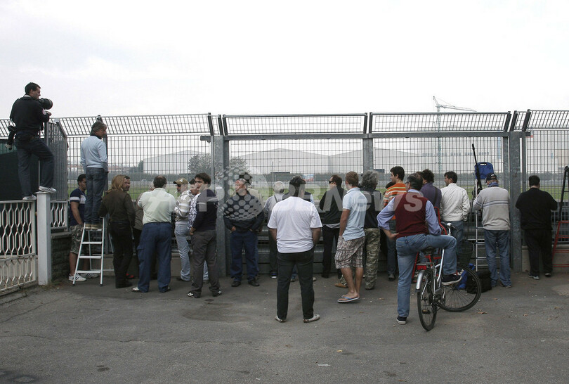 マッサは、フェラーリが所有するフィオラーノ・テスト・トラック(Fiorano Test Track)で2007年型のマシン「F2007」に搭乗し、数周を走行した。写真はテスト走行を行うフェリペ・マッサの登場を待つファン。(2009年10月12日撮影)(c)AFP/FABIO MUZZI