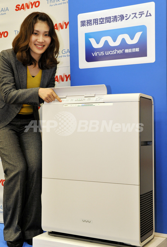 【10月14日 AFP】三洋電機(Sanyo)は13日、電解水によって空気中のウイルスや細菌、花粉などのアレルギー物質を抑制する「ウイルスウォッシャー(Virus Washer)」機能を搭載した業務用空気清浄機「VW-SF10C」を11月1日に発売すると発表した。