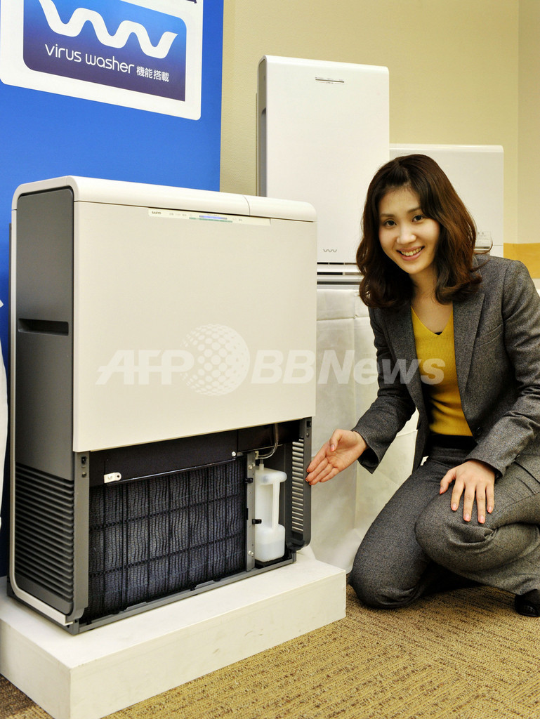【10月14日 AFP】三洋電機(Sanyo)は13日、電解水によって空気中のウイルスや細菌、花粉などのアレルギー物質を抑制する「ウイルスウォッシャー(Virus Washer)」機能を搭載した業務用空気清浄機「VW-SF10C」を11月1日に発売すると発表した。
