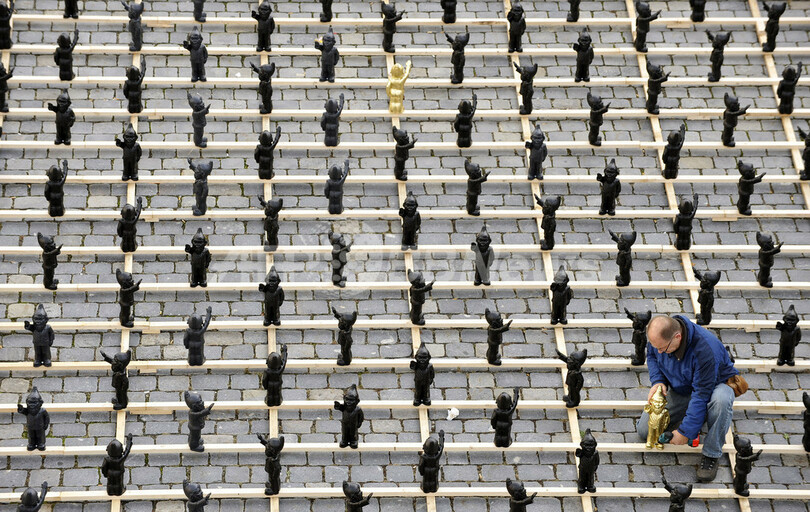 バイエルン(Bavaria)州シュトラウビング(Straubing)の屋外に並べられた1250体の人形は、19日まで展示される。(c)AFP