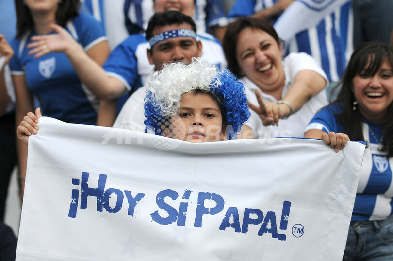 ホンジュラスは後半19分にカルロス・パボン(%%Carlos Pavon%%)が得点を決めて勝利し、米国と2-2で引き分けたコスタリカと勝ち点16で並び得失点差で上回り、本大会への切符を手にした。写真はホンジュラスを応援するファン。(2009年10月14日撮影)(c)AFP/JOSE CABEZAS
