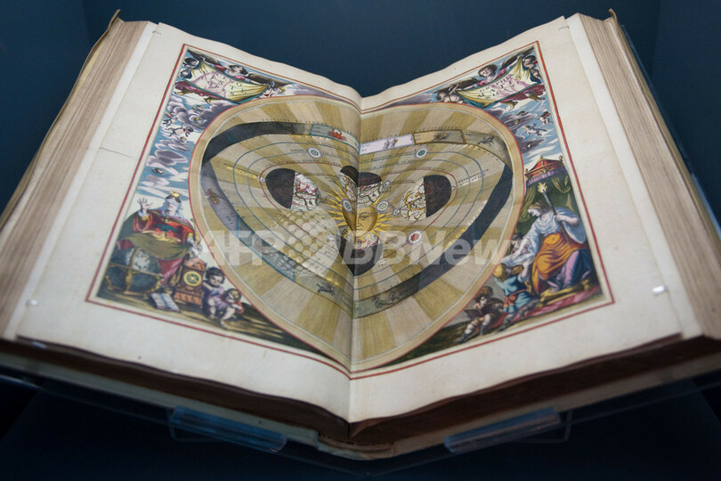 写真はバチカン博物館に展示された、1661年にアンドレアス・セラリウス(Andreas Cellarius)が製作した地図(2009年10月13日撮影)。(c)AFP/VINCENZO PINTO