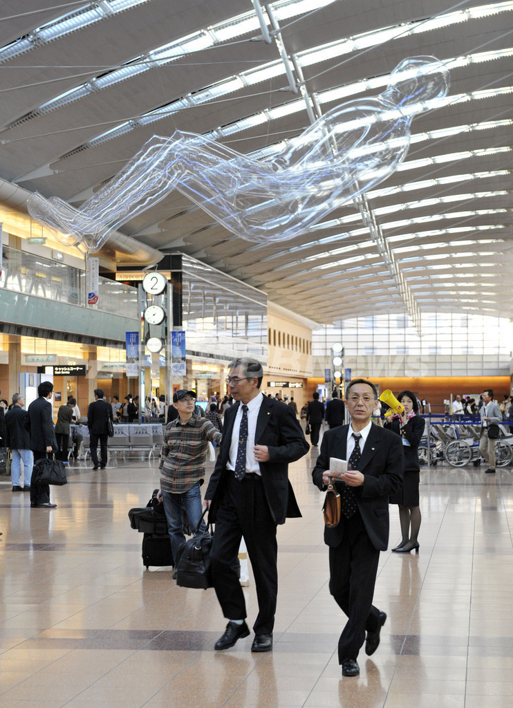ニュース ライフ 羽田空港でパブリックアート展『空気の港』開催 2009年10月15日 18:33 発信地:東京 [ アジア・オセアニア 東京 ] このニュースをシェア ‹ › ❮ 3/5 ❯ 都内の羽田空港(Haneda Airport)の旅客ターミナルで、『空気の港(Air Port)』と題したパブリックアート作品展に出展されたビニール製の人型の風船(2009年10月15日撮影)。(c)AFP/Yoshikazu TSUNO 画像作成中 ! 【10月15日 AFP】都内の羽田空港(Haneda Airport)の旅客ターミナルで、『空気の港(Air Port)』と題したパブリックアート作品展が開かれている。東京大学(Tokyo University)の廣瀬通孝(Michitaka Hirose)教授らによる「デジタルパブリックアートを創出する技術」プロジェクトが主催するもので、ターミナル施設内にさまざまな作品が展示されている。11月3日まで。(c)AFP ライフ 一覧へ> メディア・報道関係・法人の方向け 写真・動画 購入のお問合せ>