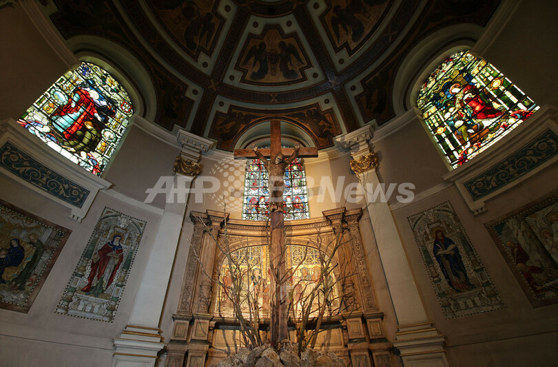 【10月17日 AFP】英ロンドン(London)西部マリルボーン(Marylebone)のかつて教会として使われていた建物で「The Age of the Marvellous(驚異の時代)」と題された現代美術の展示会が開催され、十字架にはり付けにされたゴリラの作品などが展示された。