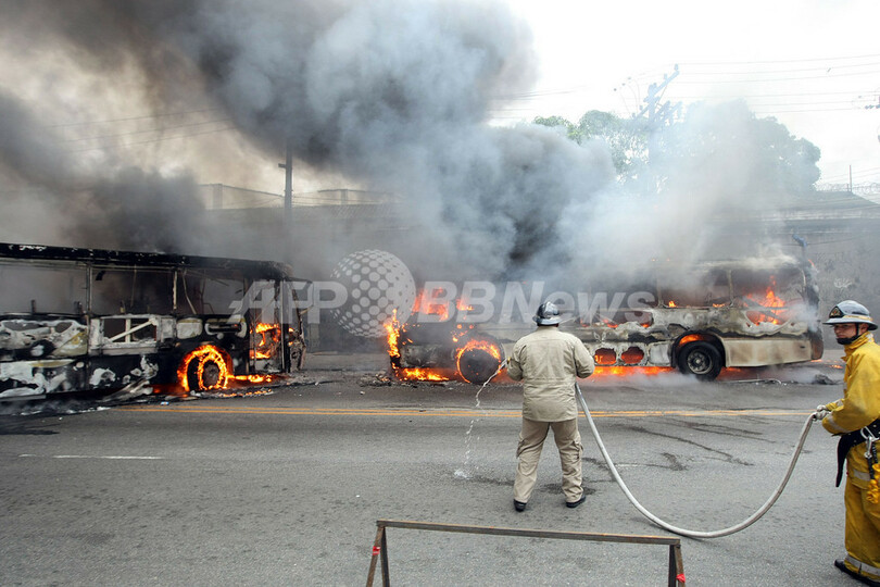 さらに、路線バス9台も放火された。路線バスの運転手によると、覆面をして銃を持った15人の男たちが、「降りろ!降りろ!このバスに火を付ける」と言って、バスに乗っていた全員を降ろさせたという。同地区における麻薬組織同士の銃撃戦を鎮圧する作戦を展開した地元警察に対する報復とみられる。