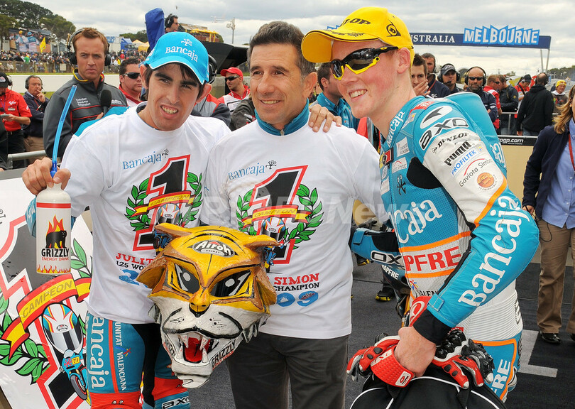 スポーツ モータースポーツ シモンが125ccクラスで年間総合優勝、オーストラリアGP 2009年10月18日 14:32 発信地:フィリップ島/オーストラリア [ アジア・オセアニア オーストラリア ] このニュースをシェア ‹ › ❮ 3/5 ❯ 世界ロードレース選手権第15戦オーストラリアGP、125ccクラス決勝。シーズン5勝目を挙げ、初の年間総合優勝を決めてチームメイトのブラドリー・スミス(%%Bradley Smith%%、右)やチームマネージャーのホルヘ・マルチネス(%%Jorge Martinez%%)と喜ぶバンカハ・アスパル・チーム125ccのフリアン・シモン(左)。(2009年10月18日撮影)(c)AFP/PAUL CROCK 画像作成中 ! 【10月18日 AFP】世界ロードレース選手権(WGP 2009)第15戦オーストラリアGP、125ccクラス決勝。バンカハ・アスパル・チーム125cc(Bancaja Aspar Team 125cc)のフリアン・シモン(Julian Simon、スペイン)が、37分55秒798でシーズン5勝目を挙げ、同クラスで初となる年間総合優勝を決めた。(c)AFP モータースポーツ 一覧へ> メディア・報道関係・法人の方向け 写真・動画 購入のお問合せ>