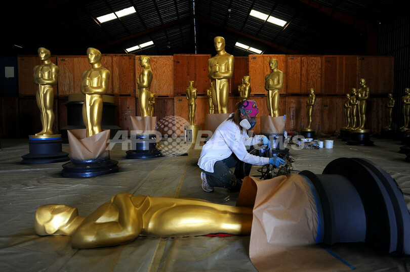 米映画芸術科学アカデミー協会(Academy of Motion Picture Arts and Sciences、AMPAS)が主催する11月のガバナーズ・アワード(Governors Awards)と来年3月7日の第82回アカデミー賞(Academy Awards)授賞式に向け、米カリフォルニア(California)州ロサンゼルス(Los Angeles)郡北部で巨大なオスカー像が制作されている(2009年10月19日撮影)。(c)AFP/Getty Images/Kristian Dowling