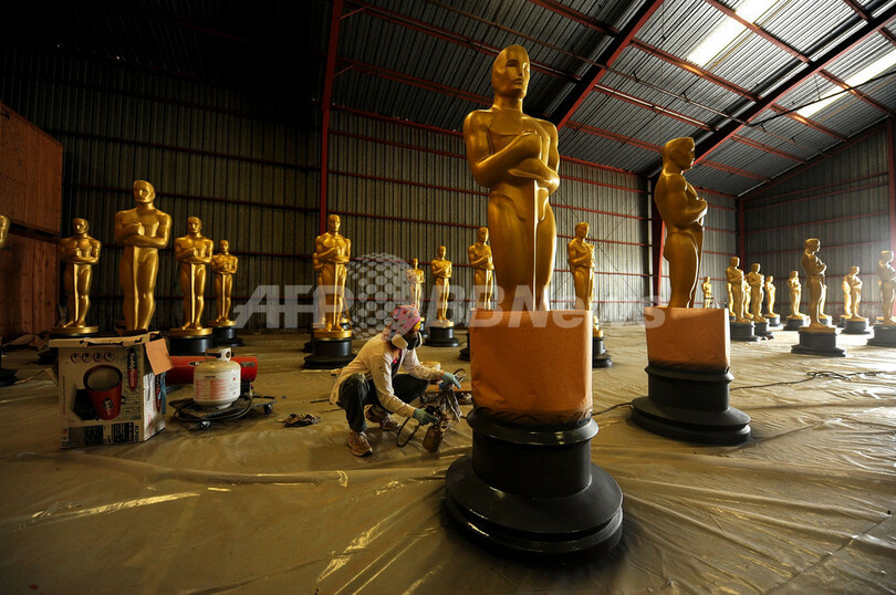 米映画芸術科学アカデミー協会(Academy of Motion Picture Arts and Sciences、AMPAS)が主催する11月のガバナーズ・アワード(Governors Awards)と来年3月7日の第82回アカデミー賞(Academy Awards)授賞式に向け、米カリフォルニア(California)州ロサンゼルス(Los Angeles)郡北部で巨大なオスカー像が制作されている(2009年10月19日撮影)。(c)AFP/Getty Images/Kristian Dowling