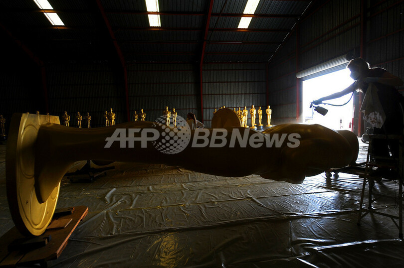 米映画芸術科学アカデミー協会(Academy of Motion Picture Arts and Sciences、AMPAS)が主催する11月のガバナーズ・アワード(Governors Awards)と来年3月7日の第82回アカデミー賞(Academy Awards)授賞式に向け、米カリフォルニア(California)州ロサンゼルス(Los Angeles)郡北部で巨大なオスカー像が制作されている(2009年10月19日撮影)。(c)AFP/Getty Images/Kristian Dowling