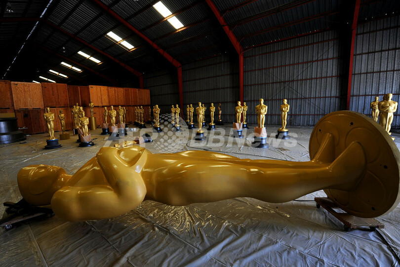 米映画芸術科学アカデミー協会(Academy of Motion Picture Arts and Sciences、AMPAS)が主催する11月のガバナーズ・アワード(Governors Awards)と来年3月7日の第82回アカデミー賞(Academy Awards)授賞式に向け、米カリフォルニア(California)州ロサンゼルス(Los Angeles)郡北部で巨大なオスカー像が制作されている(2009年10月19日撮影)。(c)AFP/Getty Images/Kristian Dowling