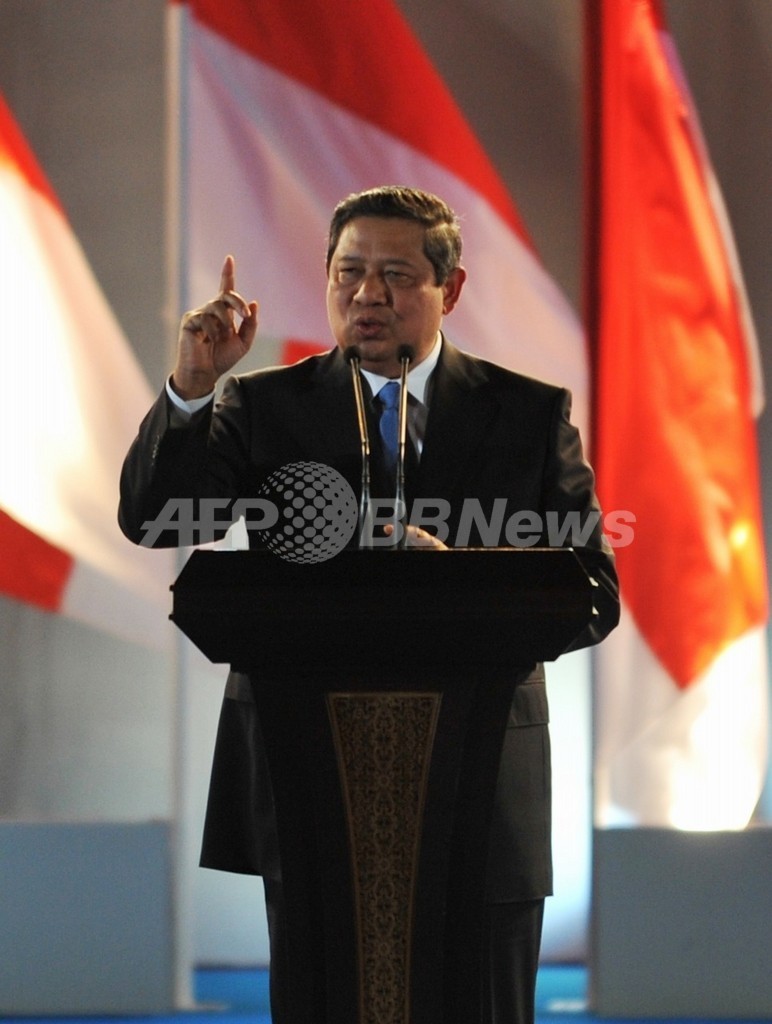 ユドヨノ大統領は、7月の大統領選で経済成長と政治改革を訴え、再選を決めた。(c)AFP