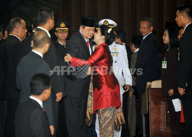 ユドヨノ大統領は、イスラム教の聖典コーラン(Koran)に手を置き憲法順守を誓った。宣誓式の様子は、2億3400万の人口を持つインドネシア全土に中継された。