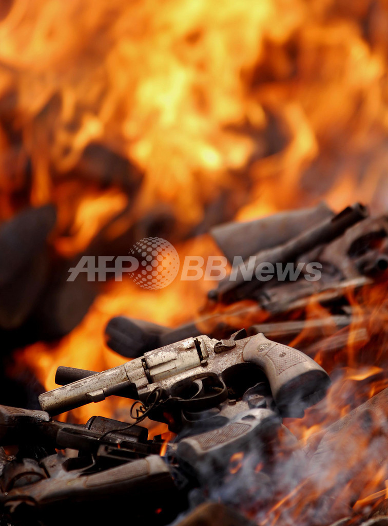 【10月20日 AFP】「小型武器非合法取引のあらゆる側面に関する国連会議(国連小型武器会議、United Nations Conference on the Ellicit Trade in Small Arms and Light Weapons in All Its Aspects)」の8周年記念式典がフィリピンの首都マニラ(Manila)で19日開かれ、国家警察庁(Philippine National PolicePNP)本部前で、押収された銃器などが焼却処分された。