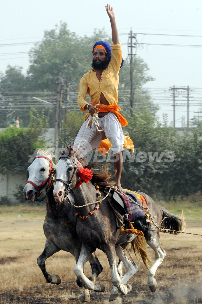 ニュース ライフ 華麗な馬術や巨大ターバン、インド北部でシーク教の祭り 2009年10月20日 23:00 発信地:アムリツァル/インド [ アジア・オセアニア インド ] このニュースをシェア ‹ › ❮ 9/12 ❯ シーク教の祭り「Fateh Divas」が、インド北部アムリツァル(Amritsar)で18日、行われた。Fateh Divasは、ヒンズー教の光の祭り「ディワリ(Diwali)」の次の日に行われる。写真は、アムリツァルで開かれた祭り「Fateh Divas」で2頭の馬に乗るシーク教徒の伝統的な軍隊「ニーハン(Nihang)」のメンバー(2009年10月18日撮影)。(c)AFP/NARINDER NANU 画像作成中 ! 【10月20日 AFP】シーク教の祭り「Fateh Divas」が、インド北部アムリツァル(Amritsar)で18日、行われた。(c)AFP ライフ 一覧へ> メディア・報道関係・法人の方向け 写真・動画 購入のお問合せ>
