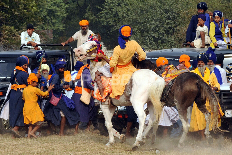 ニュース ライフ 華麗な馬術や巨大ターバン、インド北部でシーク教の祭り 2009年10月20日 23:00 発信地:アムリツァル/インド [ アジア・オセアニア インド ] このニュースをシェア ‹ › ❮ 5/12 ❯ シーク教の祭り「Fateh Divas」が、インド北部アムリツァル(Amritsar)で18日、行われた。Fateh Divasは、ヒンズー教の光の祭り「ディワリ(Diwali)」の次の日に行われる。写真は、アムリツァルで開かれた祭り「Fateh Divas」で群衆の中に飛び込もうとする馬を制御しようとするシーク教徒の伝統的な軍隊「ニーハン(Nihang)」のメンバー(2009年10月18日撮影)。(c)AFP/NARINDER NANU 画像作成中 ! 【10月20日 AFP】シーク教の祭り「Fateh Divas」が、インド北部アムリツァル(Amritsar)で18日、行われた。(c)AFP ライフ 一覧へ> メディア・報道関係・法人の方向け 写真・動画 購入のお問合せ>