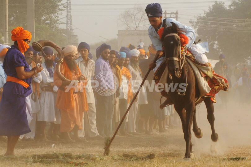 ニュース ライフ 華麗な馬術や巨大ターバン、インド北部でシーク教の祭り 2009年10月20日 23:00 発信地:アムリツァル/インド [ アジア・オセアニア インド ] このニュースをシェア ‹ › ❮ 2/12 ❯ シーク教の祭り「Fateh Divas」が、インド北部アムリツァル(Amritsar)で18日、行われた。Fateh Divasは、ヒンズー教の光の祭り「ディワリ(Diwali)」の次の日に行われる。写真は、アムリツァルで開かれた祭り「Fateh Divas」で馬に乗って馬術を披露するシーク教徒の伝統的な軍隊「ニーハン(Nihang)」のメンバー(2009年10月18日撮影)。(c)AFP/NARINDER NANU 画像作成中 ! 【10月20日 AFP】シーク教の祭り「Fateh Divas」が、インド北部アムリツァル(Amritsar)で18日、行われた。(c)AFP ライフ 一覧へ> メディア・報道関係・法人の方向け 写真・動画 購入のお問合せ>