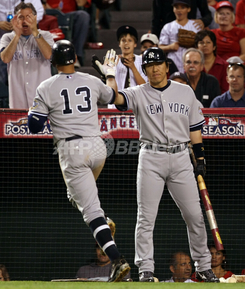 ロドリゲスは、5回に2点本塁打を放ち、2007年のポストシーズンから続く連続打点試合を8としMLB記録に並んだ。(c)AFP