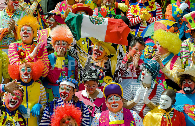 メキシコの首都メキシコ市(Mexico City)では、第14回中南米クラウン大会(Latin American Clown Convention)が開催されている。今年は、中南米諸国から1000人以上のピエロが参加している。(2009年10月21日撮影)(c)AFP/Ronaldo Schemidt