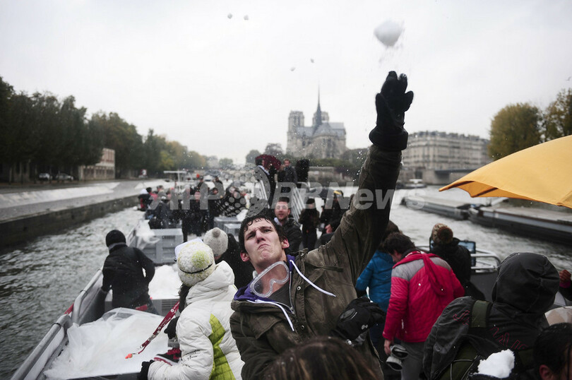 ニュース ライフ こぼれ話 セーヌ川で雪合戦、スキーリゾート地の宣伝イベント 2009年10月22日 23:27 発信地:パリ/フランス [ ヨーロッパ フランス ] このニュースをシェア ‹ › ❮ 1/4 ❯ パリ(Paris)・セーヌ(Seine)川に浮かべたはしけの上で、雪の玉を投げる若者(2009年10月21日撮影)。(c)AFP/FRED DUFOUR 画像作成中 ! 【10月22日 AFP】仏アルプス(Alps)地方のスキーリゾート地主催の宣伝イベントが21日、パリ(Paris)・セーヌ(Seine)川に浮かべたはしけの上で行われ、参加客は雪合戦をして楽しんだ。フランスのスキーリゾートは前年、積雪量が多かったことや身近な場所で消費を求める傾向が高まったことで、活況を呈した。(c)AFP ライフ 一覧へ> メディア・報道関係・法人の方向け 写真・動画 購入のお問合せ>
