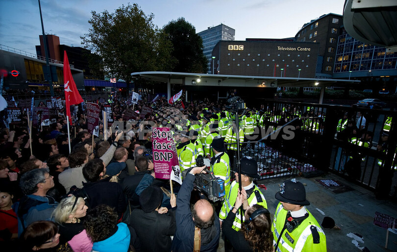 【10月23日 AFP】英BBCの視聴者参加型の人気政治討論番組「クエスチョンタイム(Question Time)」に22日、移民排斥を唱える極右政党、英国民党(British National Party、BNP)のニック・グリフィン(Nick Griffin)党首(50)が出演し、ロンドン(London)のBBC本社前などに殺到した抗議のデモ隊と警官隊が衝突して負傷者が出る騒ぎとなった。