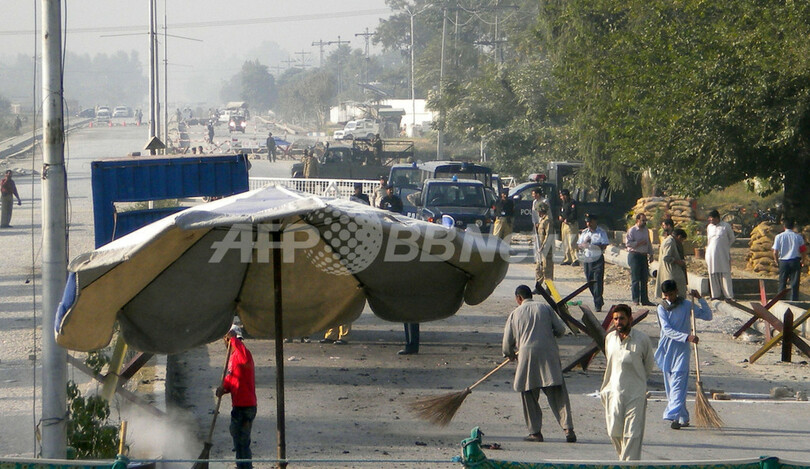 【10月23日 AFP】(一部更新、写真追加)パキスタン北西部族地域のモハマンド(Mohmand)地区で23日、結婚式の参列者らを乗せたバスが空軍基地の近くで対戦車地雷に触れて爆発し、少なくとも16人が死亡した。