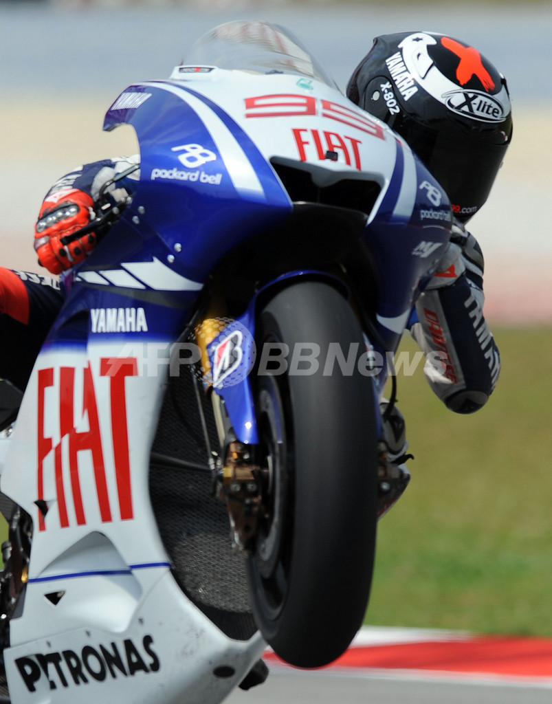 【10月25日 AFP】世界ロードレース選手権(WGP 2009)第16戦マレーシアGP、MotoGPクラス予選。フィアット・ヤマハ(Fiat Yamaha)のバレンティーノ・ロッシ(Valentino Rossi、イタリア)が、ベストラップ2分00秒518でシーズン7回目のポールポジションを獲得した。