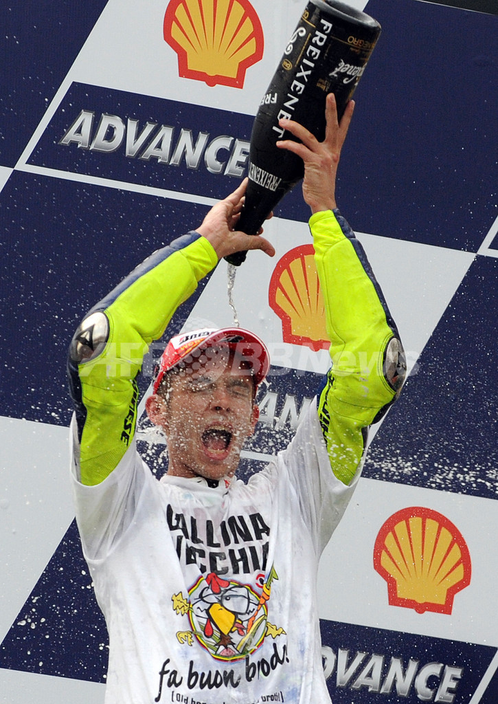 【10月26日 AFP】世界ロードレース選手権(WGP 2009)第16戦マレーシアGP、MotoGPクラス決勝。フィアット・ヤマハ(Fiat Yamaha)のバレンティーノ・ロッシ(Valentino Rossi、イタリア)が、47分44秒219で3位に入り、2年連続7度目の年間総合優勝を決めた。