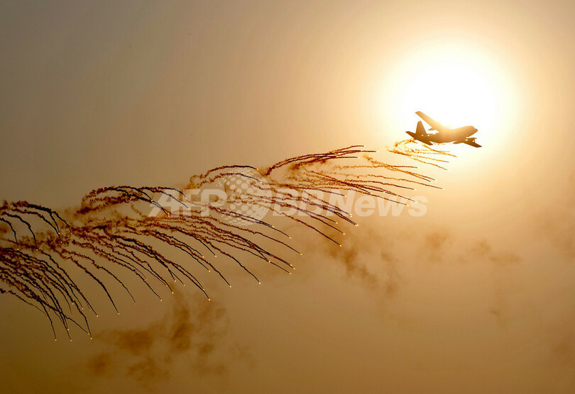 韓国の京畿道(Gyeonggi-do)城南(Seongnam)の空軍ソウル空港(Seoul Military Airport)で20日から開かれていた「ソウル国際航空宇宙および防衛産業展示会2009(ソウルエアショー2009、Seoul International Aerospace & Defense Exhibition 2009)」が25日、閉幕した。今年のショーは、同国空軍の創立60周年を記念する大会となった。写真は、デモ飛行する軍用輸送機C-130Jハーキュリーズ(Hercules、2009年10月23日撮影)。(c)AFP/KIM JAE-HWAN
