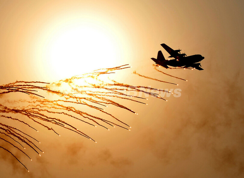 韓国の京畿道(Gyeonggi-do)城南(Seongnam)の空軍ソウル空港(Seoul Military Airport)で20日から開かれていた「ソウル国際航空宇宙および防衛産業展示会2009(ソウルエアショー2009、Seoul International Aerospace & Defense Exhibition 2009)」が25日、閉幕した。今年のショーは、同国空軍の創立60周年を記念する大会となった。写真は、デモ飛行する軍用輸送機C-130Jハーキュリーズ(Hercules、2009年10月23日撮影)。(c)AFP/KIM JAE-HWAN