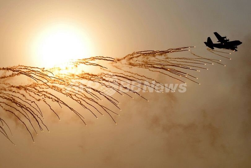 韓国の京畿道(Gyeonggi-do)城南(Seongnam)の空軍ソウル空港(Seoul Military Airport)で20日から開かれていた「ソウル国際航空宇宙および防衛産業展示会2009(ソウルエアショー2009、Seoul International Aerospace & Defense Exhibition 2009)」が25日、閉幕した。今年のショーは、同国空軍の創立60周年を記念する大会となった。写真は、デモ飛行する軍用輸送機C-130Jハーキュリーズ(Hercules、2009年10月23日撮影)。(c)AFP/KIM JAE-HWAN