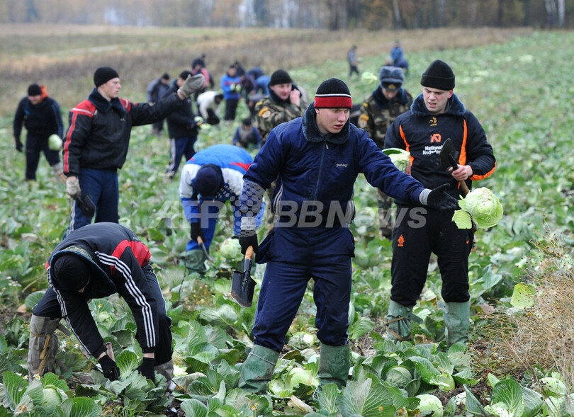 ニュース 政治・経済 こぼれ話 本日の戦場はキャベツ畑、兵士が収穫に協力 ベラルーシ 2009年10月26日 13:27 発信地:Olekhnovichi/ベラルーシ [ ロシア・CIS ベラルーシ ] このニュースをシェア ‹ › ❮ 4/11 ❯ ベラルーシの首都ミンスク(Minsk)から北方75キロの村にある国営集団農場で25日、キャベツの収穫作業に内務省所属の兵士が動員された。写真は、キャベツを収穫する兵士ら(2009年10月25日撮影)。(c)AFP/VIKTOR DRACHEV NIKOLSKY 画像作成中 ! 【10月26日 AFP】ベラルーシの首都ミンスク(Minsk)から北方75キロの村にある国営集団農場で25日、キャベツの収穫作業に内務省所属の兵士が動員された。(c)AFP 政治・経済 一覧へ> メディア・報道関係・法人の方向け 写真・動画 購入のお問合せ>