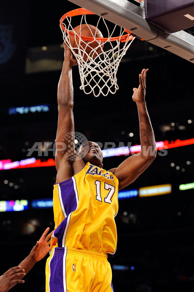 【10月28日 AFP】(記事更新、写真追加)09-10NBA、ロサンゼルス・レイカーズ(Los Angeles Lakers)対ロサンゼルス・クリッパーズ(Los Angeles Clippers)。試合は08-09シーズンのファイナル覇者レイカーズが99-92でクリッパーズを下し、開幕戦を白星で飾った。