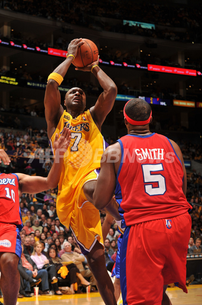 レイカーズは対クリッパーズ戦の連勝を9とし、ステープルズ・センター(Staples Center)での対戦戦績を32勝9敗とした。(c)AFP/Greg Heakes