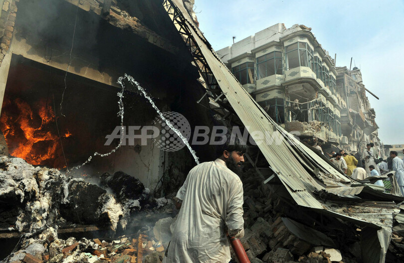 【10月28日 AFP】(一部更新)パキスタン北西部ペシャワル(Peshawar)の市場で28日、自動車爆弾が爆発し、92人が死亡、217人が負傷した。ペシャワル市内の病院医師らによると、死者の大半は女性や子どもだという。
