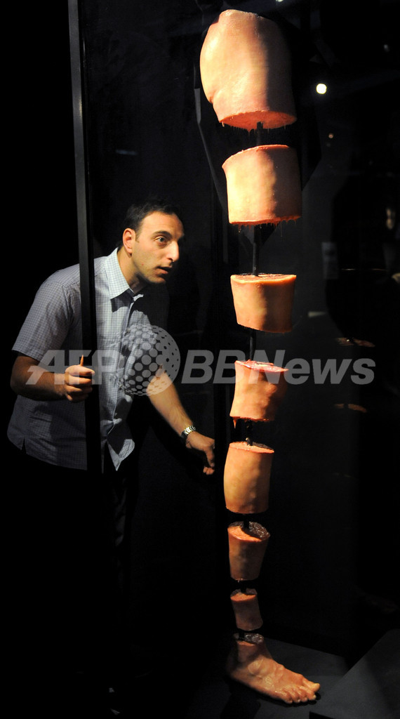 写真は、展示されている脚の模型(2009年10月28日撮影)。(c)AFP/William WEST