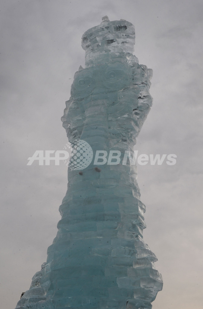 「アイス・エイジ」のキャラが、高さ14メートルの氷の彫刻に