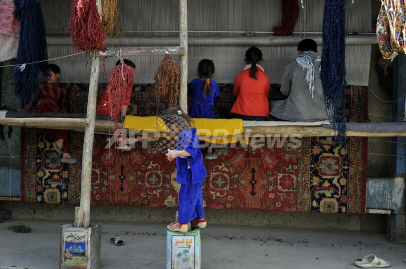 【11月1日 AFP】写真はアフガニスタンのじゅうたん織り工房で働く少年少女たち。アフガニスタンでは多くの子どもたちが、読み書きを覚えるのもそこそこに、家計を助けるために働いている。午前中働き、午後に学校に行く子もいる。そうした子どもたちの家族は、約30年にもわたる国内の混乱でパキスタンなど周辺国に流出し、最近帰国した難民たちだ。