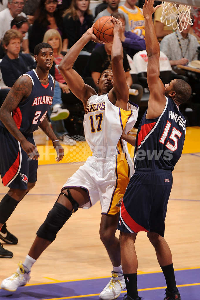シーズン初黒星を喫したホークスは、第1クォーターに18得点を記録したジョー・ジョンソン(Joe Johnson)が27得点、ジャマール・クロフォード(Jamal Crawford)が17得点、マイク・ビビー(Mike Bibby)が15得点、新人のジェフ・ティアグ(Jeff Teague)が12得点を記録したが、第3クォーターのレイカーズの攻撃を止めることができず突き放された。(c)AFP