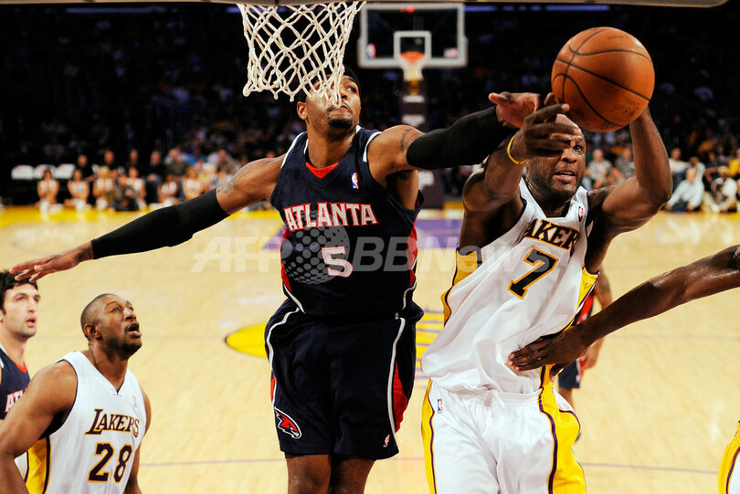シーズン初黒星を喫したホークスは、第1クォーターに18得点を記録したジョー・ジョンソン(Joe Johnson)が27得点、ジャマール・クロフォード(Jamal Crawford)が17得点、マイク・ビビー(Mike Bibby)が15得点、新人のジェフ・ティアグ(Jeff Teague)が12得点を記録したが、第3クォーターのレイカーズの攻撃を止めることができず突き放された。(c)AFP