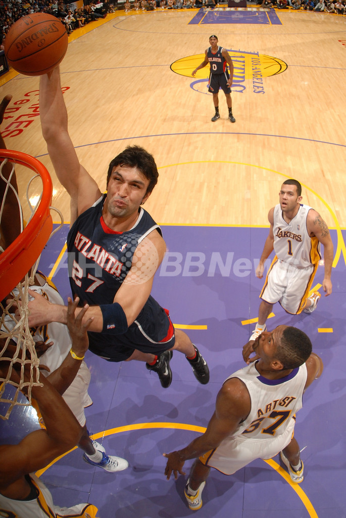 シーズン初黒星を喫したホークスは、第1クォーターに18得点を記録したジョー・ジョンソン(Joe Johnson)が27得点、ジャマール・クロフォード(Jamal Crawford)が17得点、マイク・ビビー(Mike Bibby)が15得点、新人のジェフ・ティアグ(Jeff Teague)が12得点を記録したが、第3クォーターのレイカーズの攻撃を止めることができず突き放された。(c)AFP